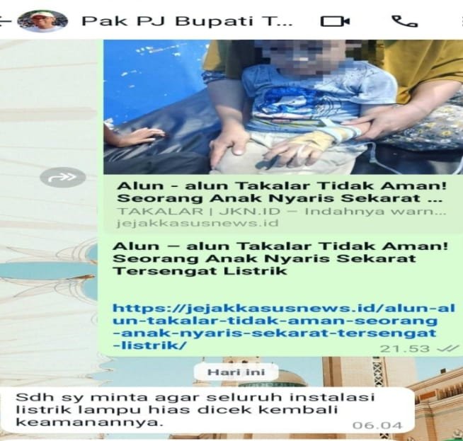 TAKALAR | JKN.ID — Seorang anak dilaporkan dilarikan ke rumah sakit setelah tersengat listrik di area alun-alun Takalar, pada Minggu (24/11/2024).