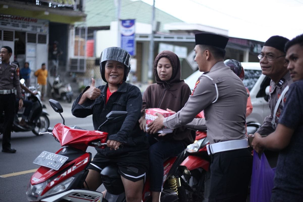 “Selain berbagi kepada sesama dalam hal ini para pengguna jalan, kegiatan ini juga sebagai wujud kedekatan Polri dengan masyarakat,” ujar Kapolres Bantaeng.