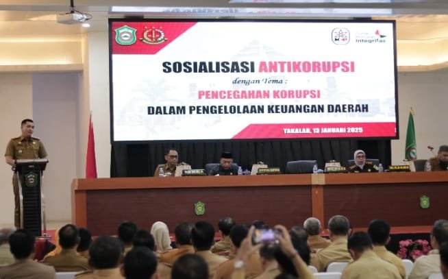 TAKALAR | JejakKasusNews.Id – Hari ini kita berkumpul dalam agenda Sosialisasi Anti Korupsi, ini amanah dari hasil pelaksanaan survei penilaian integritas oleh KPK. KPK sudah membuat langkah-langkah edukasi pencegahan korupsi melalui MCP. Monitoring Center for Prevention (MCP) adalah instrumen bagi KPK untuk mengukur sebagaimana pencegahan yang dilakukan oleh pemerintah daerah dan Alhamdulillah dalam penilaian integritas tahun kemarin skor Kab. Takalar lebih tinggi dari tahun-tahun sebelumnya.