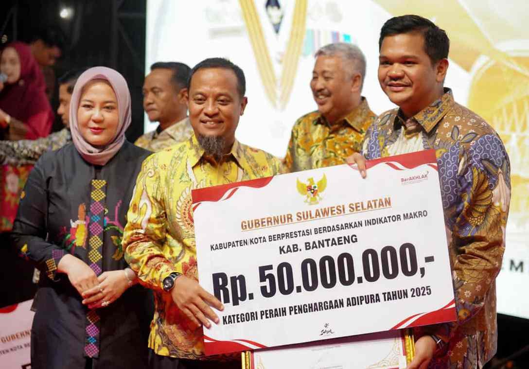 Bupati Bantaeng, M. Fathul Fauzy Nurdin menerima secara langsung apresiasi sebagai salah satu Kabupaten Berprestasi berdasarkan Indikator Makro sebesar Rp.50 juta pada kategori peraih Penghargaan Adipura Tahun 2025.