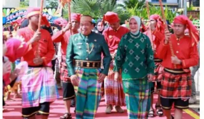 Penampilan Bupati Takalar dengan busana adat hijau menjadi salah satu sorotan yang menambah warna dalam perayaan budaya tahunan tersebut.(Wir)