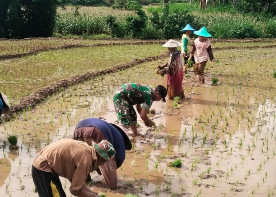 Gowa – Babinsa Koramil 1409-07/Tompobulu Kodim 1409/Gowa, Serda Makmur, turun langsung ke sawah membantu petani desa binaan menanam padi. Kegiatan Babinsa membantu petani ini berlangsung di Dusu...