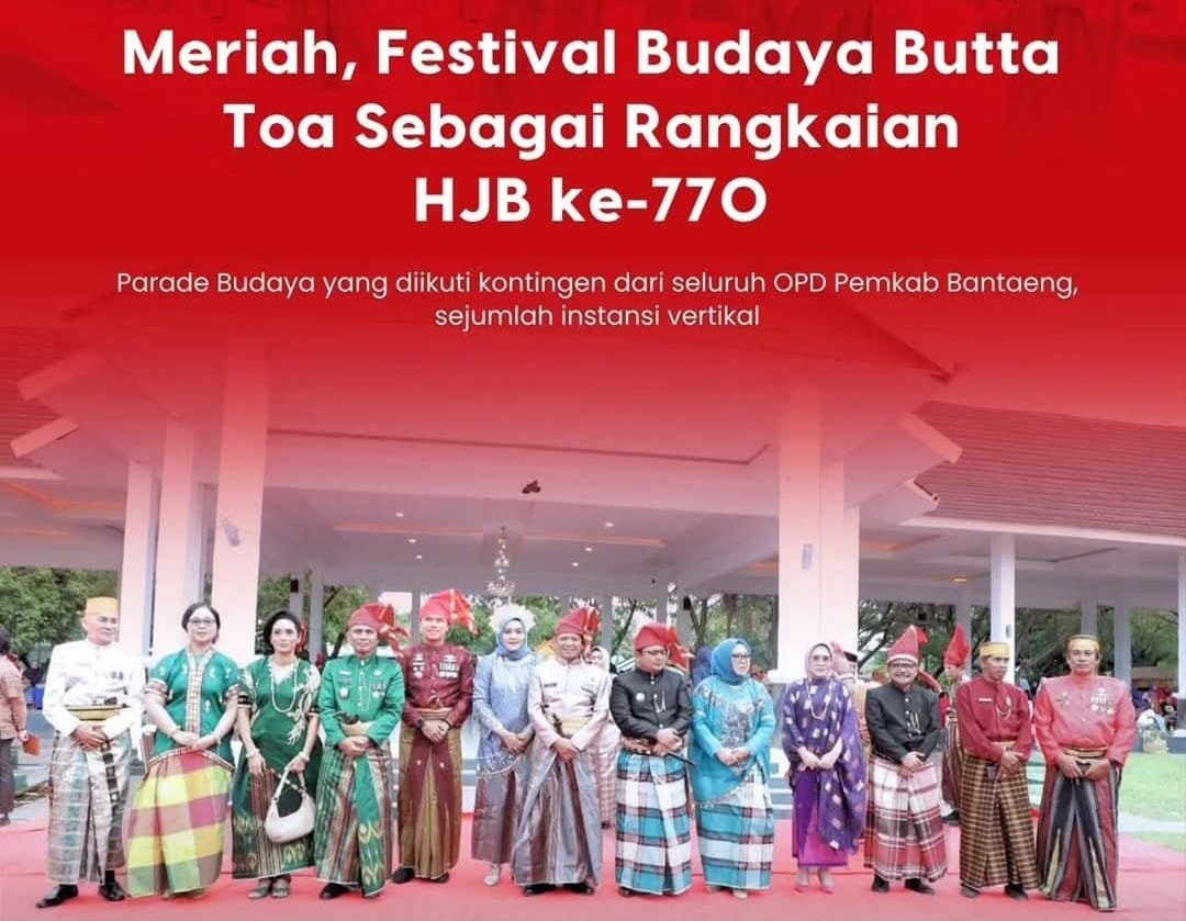 Meriahkan Hari Jadi Bantaeng ke-770, Pemkab menggelar Festival Budaya Buttatoa di Lapangan Tribun Seruni. Jumat, (06 Desember 2024). Pj Bupati Bantaeng, DR. Andi Abubakar, S.Ip, M.Si di laman media so...