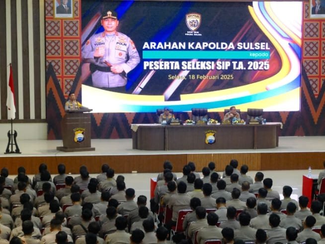 SULSEL | JejakKasusNews.Id – Kapolda Sulawesi Selatan, Irjen Pol. Yudhiawan S.H., S.I.K., M.H., M.Si., memberikan pengarahan kepada seluruh peserta Seleksi Sekolah Inspektur Polisi (SIP) T.A. 20...