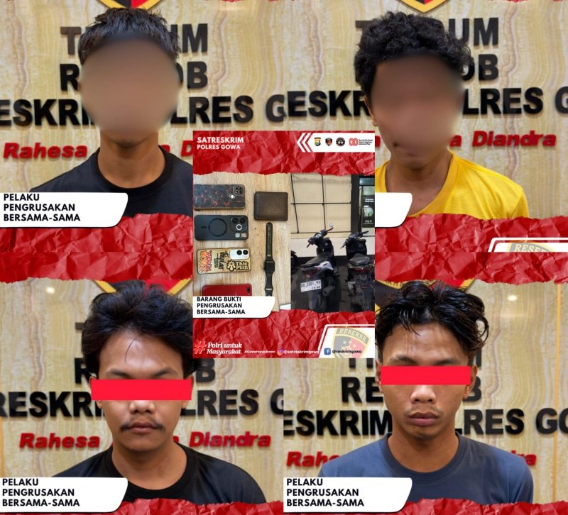 GOWA | JejakKasusNews.Id – Unit Resmob Satreskrim Polres Gowa berhasil meringkus empat terduga pelaku tindak pidana pengrusakan, pada Rabu (10/9/2025) sekira pukul 01.50 WITA.