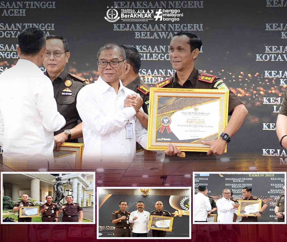 Jakarta – Kepala Kejaksaan Negeri Bantaeng, Hadi Sukma Siregar, S.H., C.N, menghadiri sekaligus menerima acara Penganugerahan Zona Integritas Wilayah Bebas dari Korupsi (WBK) di Lingkungan Kejaksaan Republik Indonesia Tahun 2025, yang diselenggarakan di Aula Gedung Utama Kejaksaan Agung RI. Rabu (17 Desember 2025).