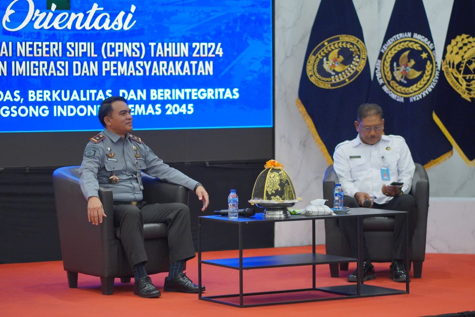 MAKASSAR | JejakKasusNews.Id – Kepala Lembaga Pemasyarakatan (Kalapas) Kelas I Makassar, Sutarno, memberikan pengarahan kepada Calon Pegawai Negeri Sipil (CPNS) di lingkungan Kantor Wilayah Direktorat Jenderal Pemasyarakatan Sulawesi Selatan, Selasa (10/6).