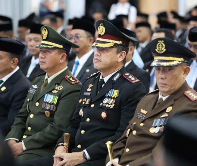 GOWA | JejakKasusNews.Id – Kapolres Gowa AKBP R.T.S Simanjuntak, S.H., S.I.K., M.M., M.I.K. bersama Forum Koordinasi Pimpinan Daerah (Forkopimda) Kabupaten Gowa menghadiri acara serah terima jabatan (Sertijab) Bupati Gowa yang berlangsung di Baruga Karaeng Galesong Kantor Bupati Gowa, Senin (03/3/2025).