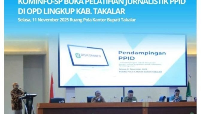 TAKALAR | JKN – Pemerintah Kabupaten Takalar melalui Dinas Komunikasi dan Informatika, Statistik, dan Persandian (Kominfo-SP) bekerja sama dengan Tribun Timur menggelar Pelatihan Jurnalistik bagi Pejabat Pengelola Informasi dan Dokumentasi (PPID) di lingkungan Organisasi Perangkat Daerah (OPD) se-Kabupaten Takalar.