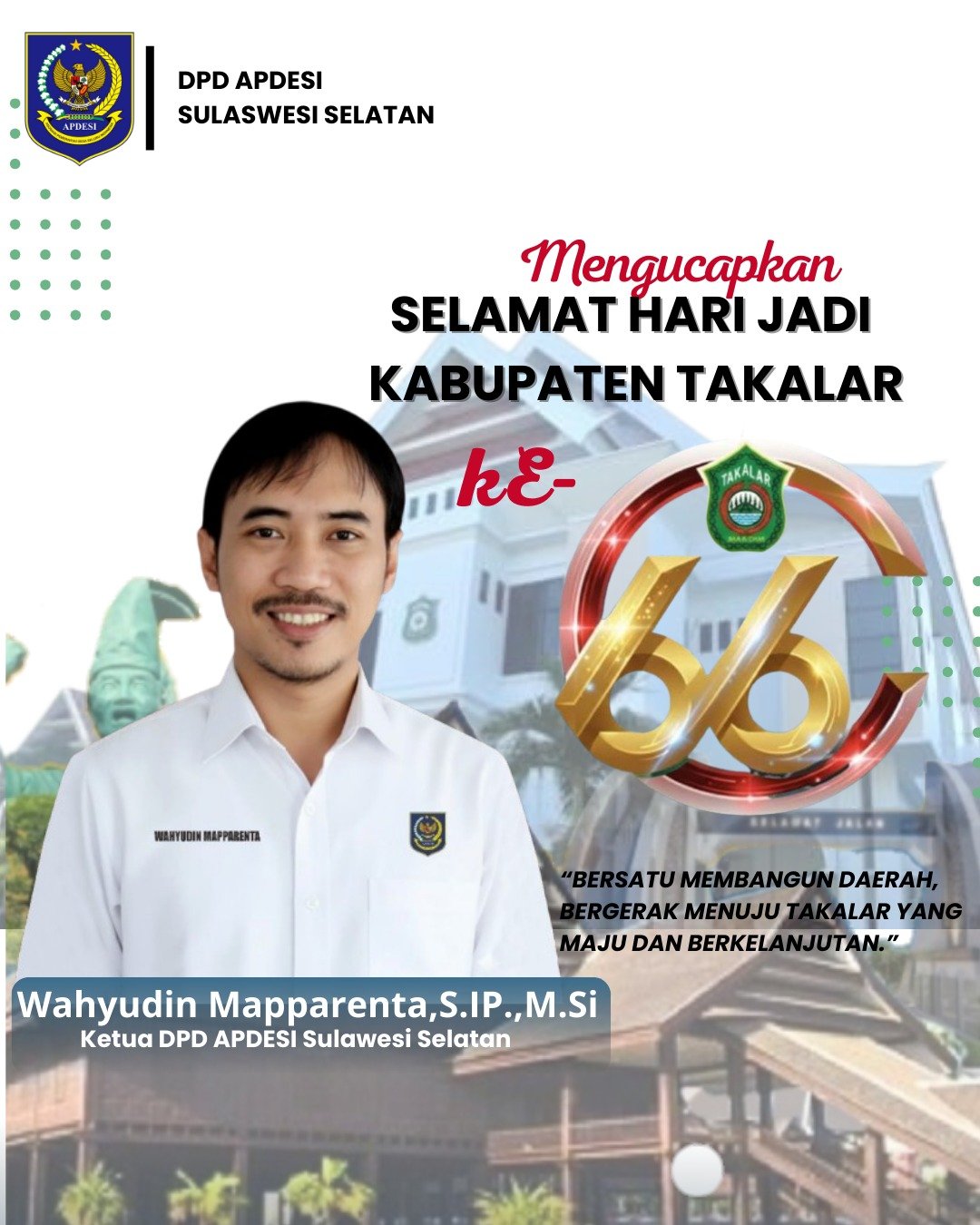Kepala BKAD Mengucapkan Selamat Hari Jadi Kabupaten Takalar Ke- 66