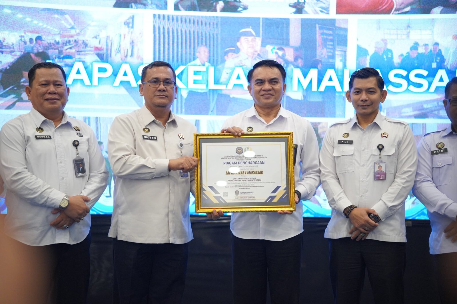 MAKASSAR | JKN – Lembaga Pemasyarakatan (Lapas) Kelas I Makassar kembali menorehkan prestasi membanggakan dengan meraih Penghargaan sebagai Unit Pelaksana Teknis (UPT) Terbaik dalam Pelaksanaan Pelayanan Publik.