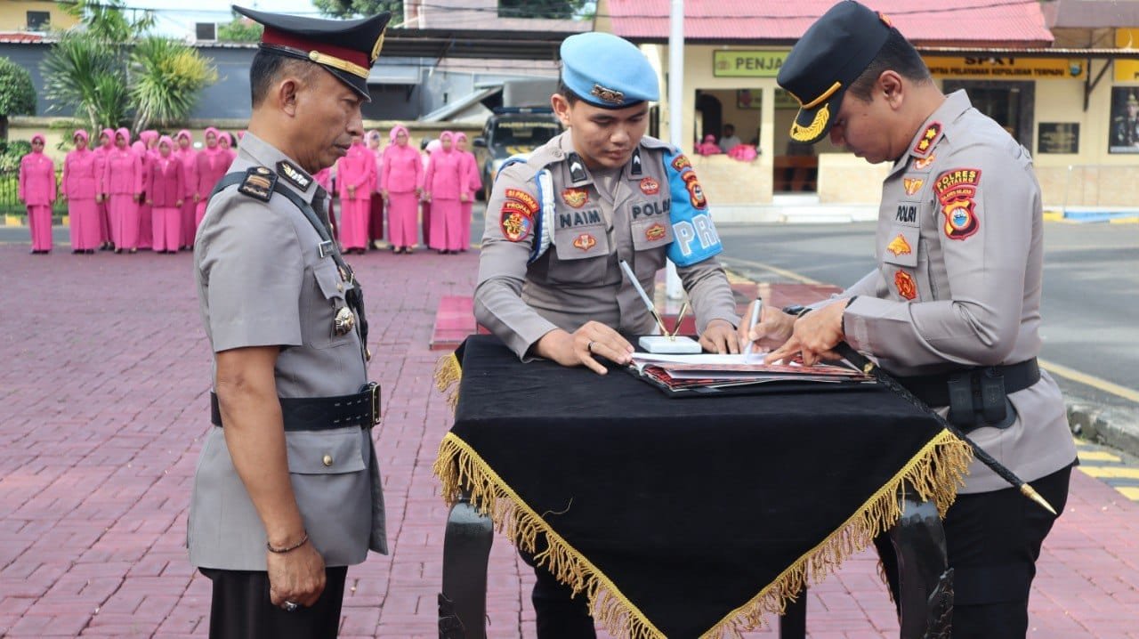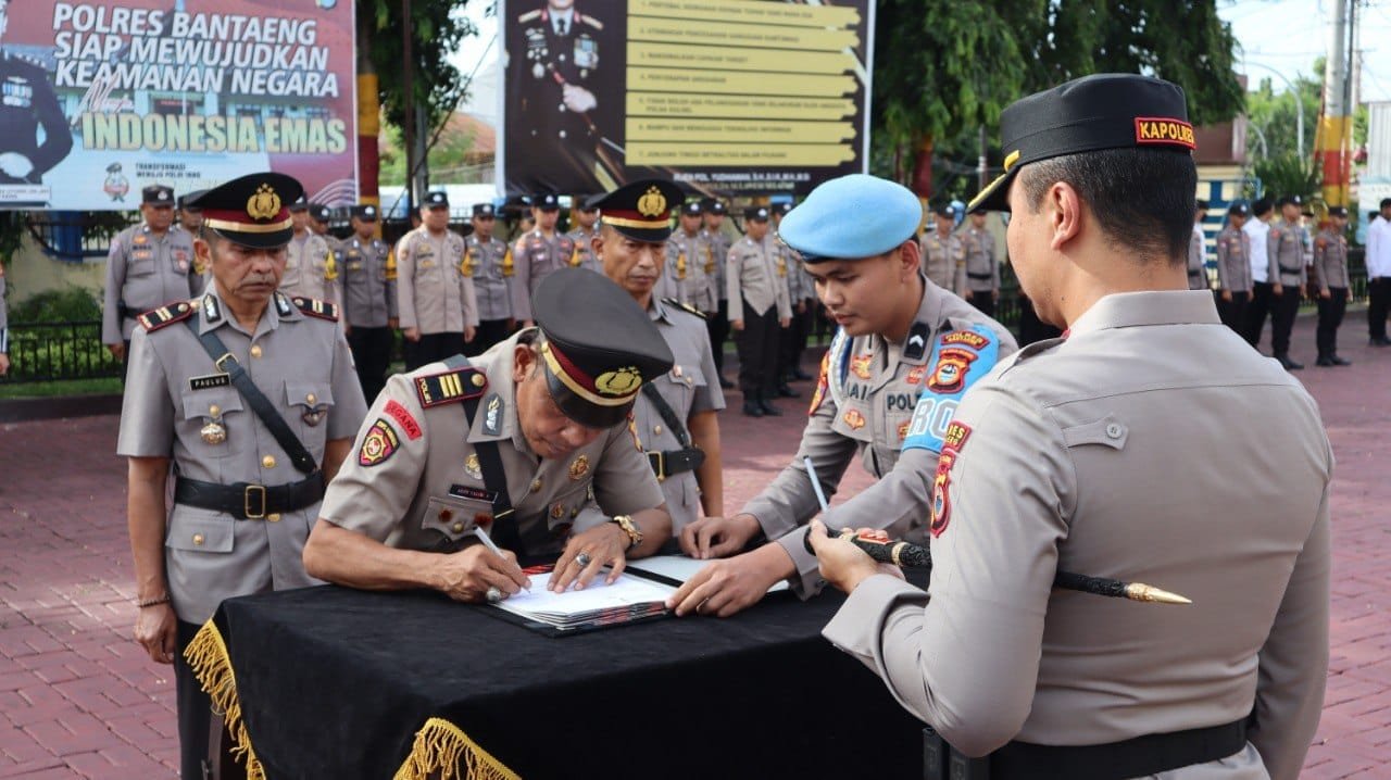Kapolres Bantaeng AKBP Nur Prasetyantoro Wira Utomo, S.I.K.,M.H memimpin langsung upacara Serah Terima Jabatan Kapolsek Pajukukang dan Kapolsek Bisappu. Selasa (25/03/25).