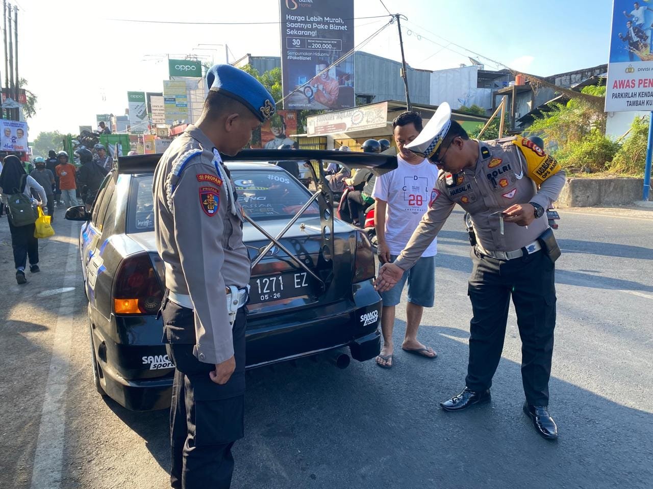 GOWA | JKN.ID – Satuan Lalu Lintas (Satlantas) Polres Gowa, dipimpin oleh Kanit Patroli IPDA Hamsal, S.H., melaksanakan penindakan terhadap pengendara yang menggunakan knalpot tidak sesuai spesifikasi atau knalpot brong dalam rangka Operasi Zebra Pallawa 2024.