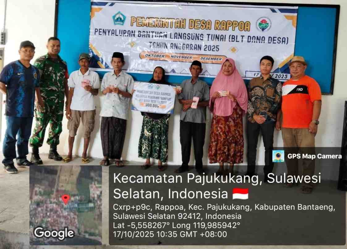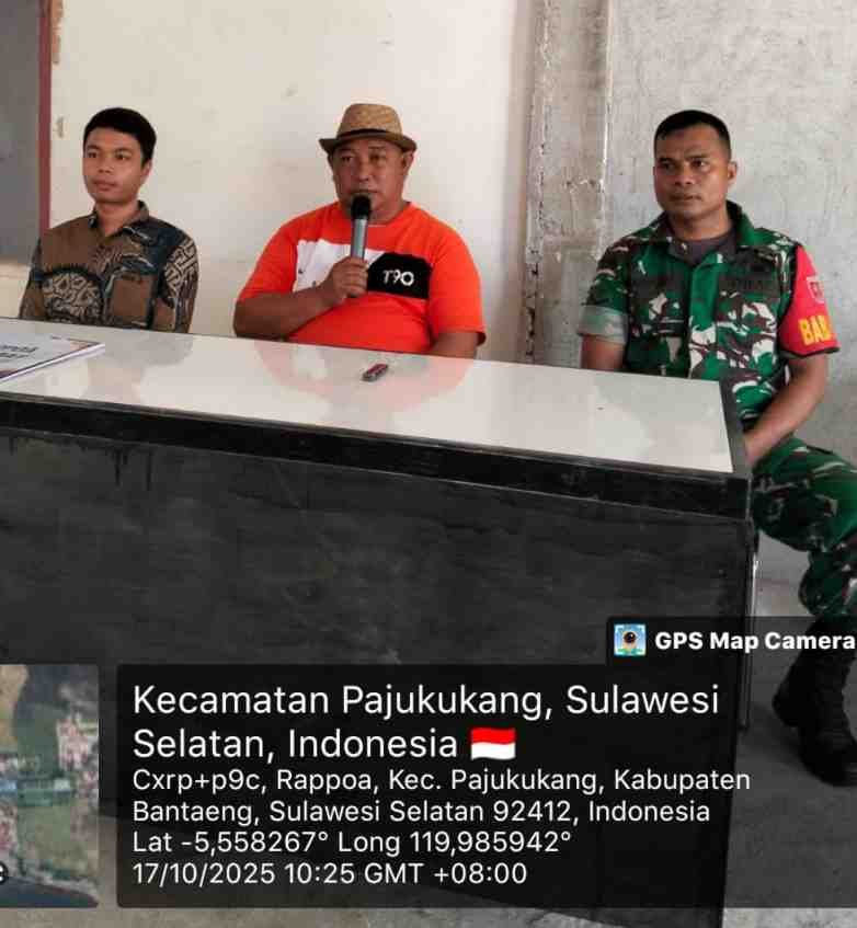 Bantaeng – Babinsa Desa Rappoa, Koramil 1410-03/Tompobulu, Serda Haryono melaksanakan pendampingan dalam kegiatan penyaluran Bantuan Langsung Tunai Dana Desa (BLT-DD) yang digelar di Kantor Desa Rappoa, Dusun Boddong, Kecamatan Pa’jukukang, Kabupaten Bantaeng. Jumat (17/10/2025).