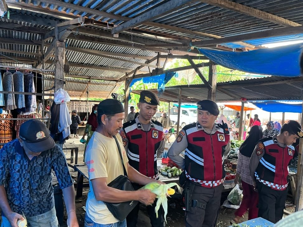 Kegiatan ini dimulai dengan patroli mobile di area sekitar pasar. Personel menyapa dan berdialog langsung dengan para pedagang serta pengunjung pasar, menyampaikan imbauan kamtibmas agar masyarakat senantiasa waspada terhadap berbagai potensi tindak kriminal, seperti pencopetan, pencurian, penipuan, serta peredaran uang palsu yang kerap terjadi di lingkungan pasar.
