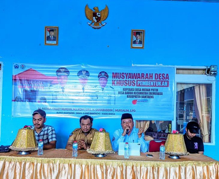 Bantaeng – Pemerintah Desa (Pemdes) Barua di Kecamatan Eremerasa, menggelar kegiatan Musyawarah Desa Khusus untuk pembentukan Koperasi Merah Putih.