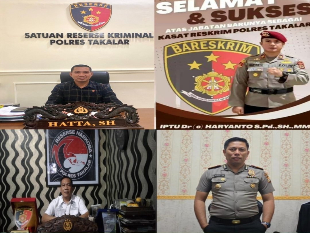 Pengganti posisi Kasat Reskrim Polres Takalar diemban oleh Iptu Hariyanto, S.Pd., S.H., M.M. Sebelumnya, beliau menjabat sebagai Panit 2 Unit 2 Direktorat Reserse Kriminal Khusus (Ditreskrimsus) Polda Sulsel. Latar belakang pendidikan yang komprehensif dan pengalaman kerja yang dimiliki oleh Iptu Hariyanto dipercaya dapat meningkatkan kinerja satuan reskrim dalam menangani berbagai perkara hukum di wilayah Takalar.
