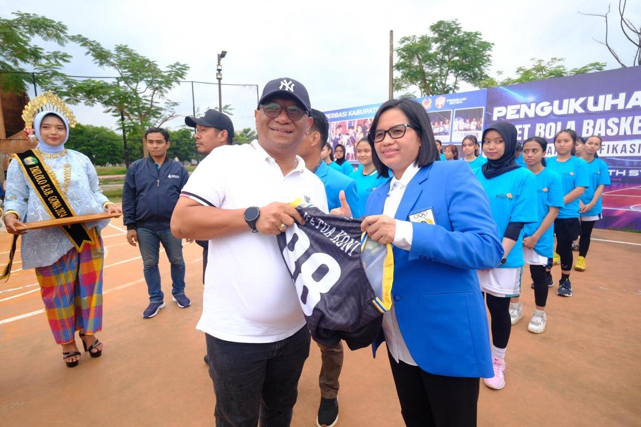 GOWA | JejakKasusNews.Id — Menjelang babak kualifikasi Pekan Olahraga Provinsi (Porprov) XVIII Tahun 2025, Ketua Umum Persatuan Bola Basket Seluruh Indonesia (Perbasi) Kabupaten Gowa, Husniah Talenrang, mengukuhkan para atlet bola basket di Lapangan Basket Syekh Yusuf, Kabupaten Gowa, Sabtu, 17 Mei 2025.