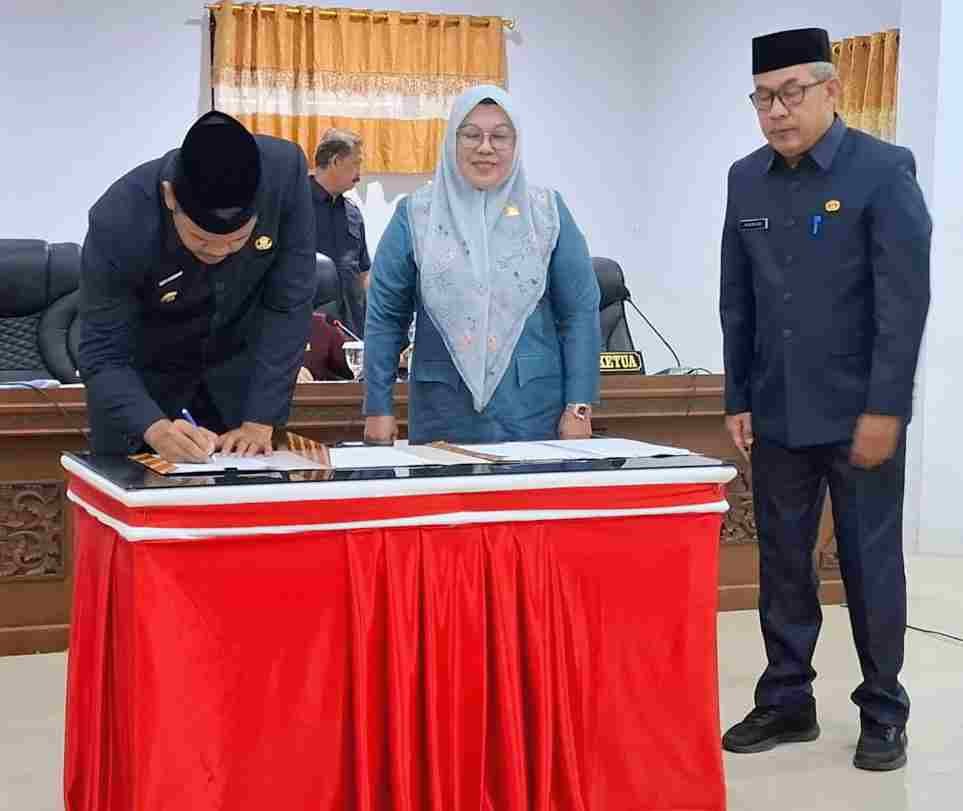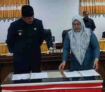 Persetujuan tersebut ditandai dengan penandatanganan nota kesepakatan oleh Bupati Bantaeng, M. Fathul Fauzy Nurdin, bersama Wakil Ketua DPRD Kabupaten Bantaeng, Hj. Kasmawati disaksikan Sekertaris DPRD Bantaeng, Saharuddin, S.E.