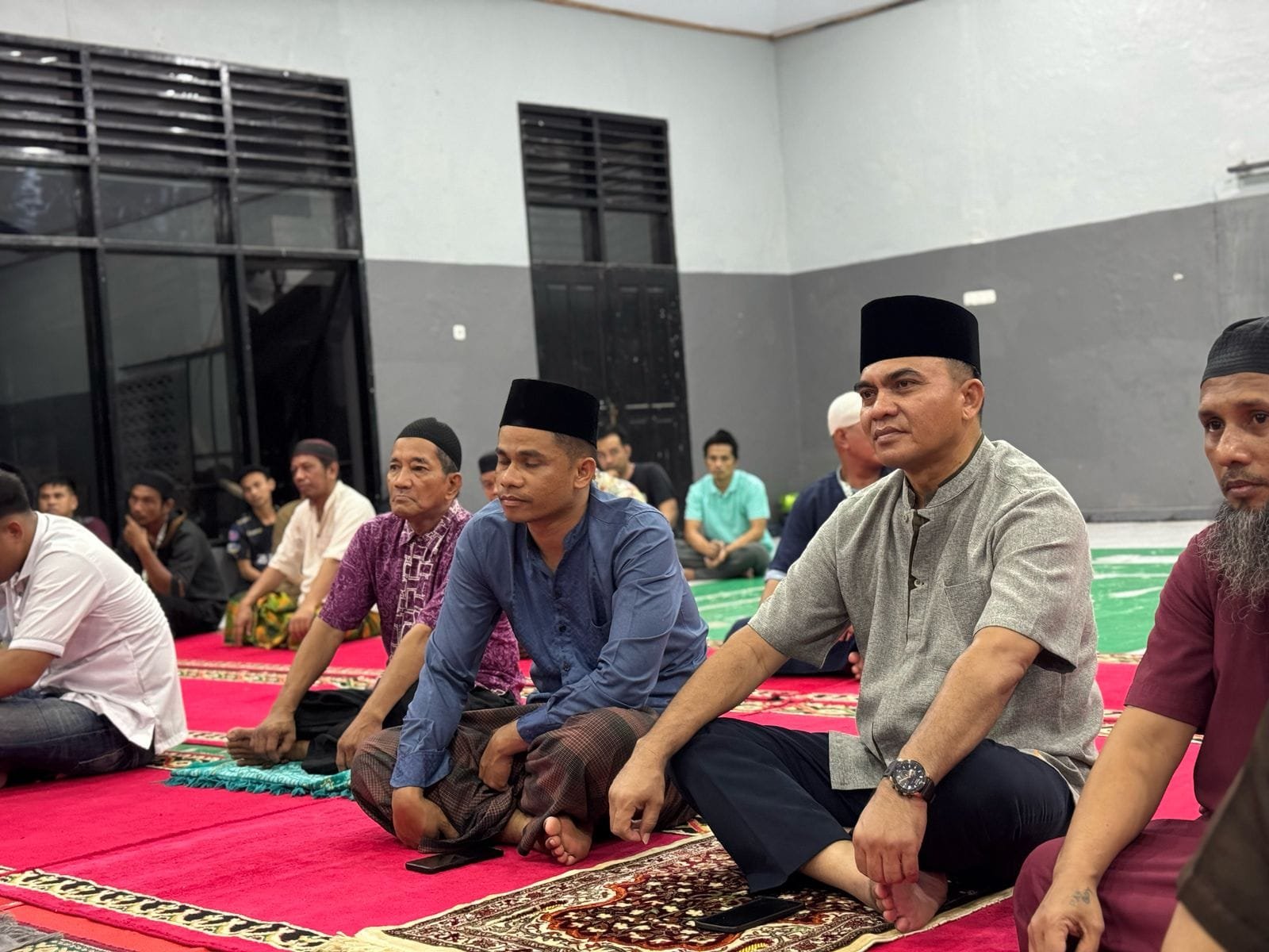 MAKASSAR | JejakKasusNews.Id – Kepala Lembaga Pemasyarakatan (Kalapas) Kelas I Makassar, Sutarno melaksanakan sholat tarawih bersama Warga Binaan Pemasyarakatan (WBP) di Aula Lapas Makassar, Sabtu (1/3).