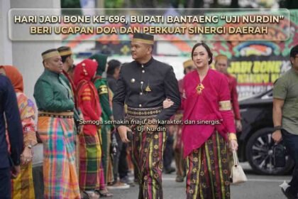 Bupati Bantaeng, M. Fathul Fauzy Nurdin, didampingi Ketua Tim Penggerak PKK Bantaeng, Gunya Paramasukhaputri, menghadiri puncak peringatan Hari Jadi Bone (HJB) ke-696 yang dipusatkan di Rumah Jabatan ...