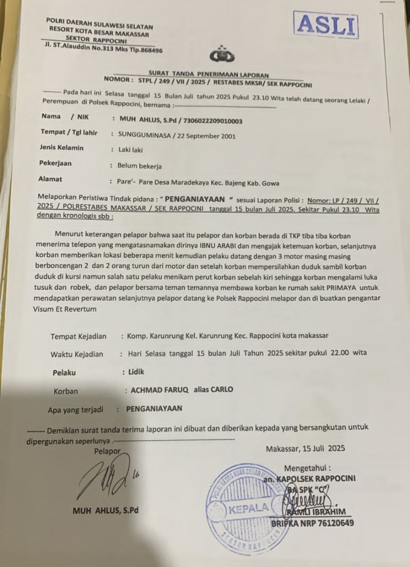 MAKASSAR | JejakKasusNews.Id — Penanganan kasus penikaman yang terjadi di Jl. Karunrung, Kelurahan Rappocini, Kota Makassar, menuai sorotan tajam dari masyarakat dan keluarga korban. Lebih dari sepeka...