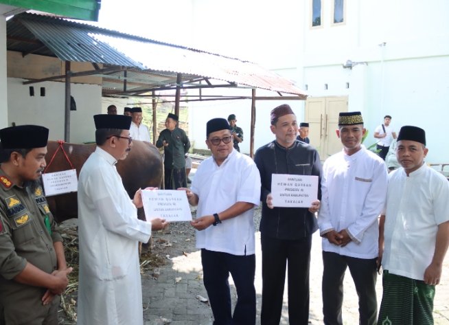 Penyerahan sapi kurban jenis Limosin dengan berat 950 kg diserahkan ke pengurus mesjid Agung Takalar dengan penuh haru dan khidmat yang merupakan bagian dari program kurban Presiden yang bertujuan untuk mendukung pelaksanaan ibadah kurban di berbagai daerah, terutama bagi masyarakat yang kurang mampu.