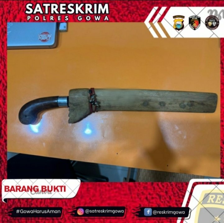 Korban sempat menghindar dengan bersembunyi di bawah meja sebelum akhirnya melarikan diri dan melaporkan kejadian tersebut ke Polres Gowa. Barang bukti yang diamankan berupa 1 bilah parang.